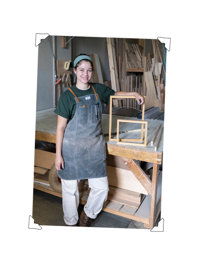 Outside the studio, Jessie co-runs ShowMe Hikes, a community hiking program that brings people together to explore Missouri’s public lands and learn about local ecosystems. She also operates Frame STL, a custom framing studio focused on craftsmanship and education, where she teaches others how to frame their own artwork.