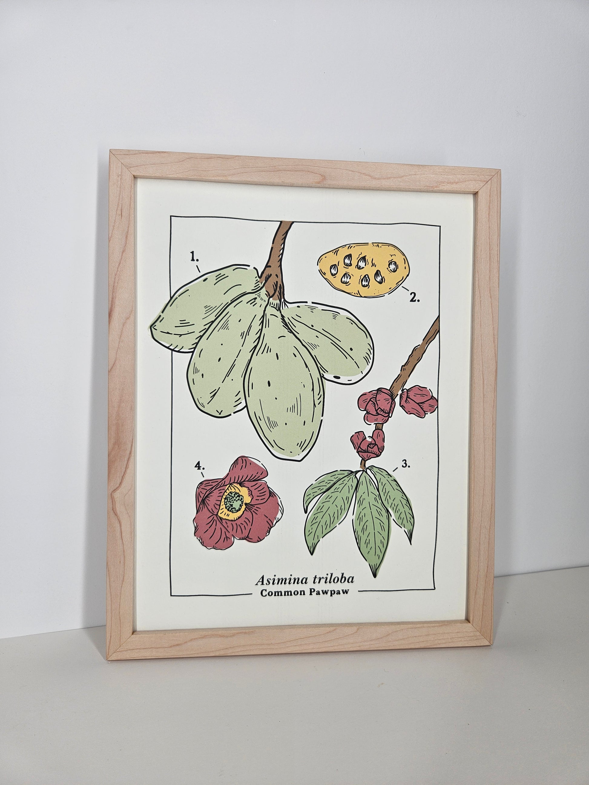 Hand-drawn illustration of the Common Pawpaw (Asimina triloba), North America’s largest native wild fruit, found throughout the Eastern and Midwestern United States.