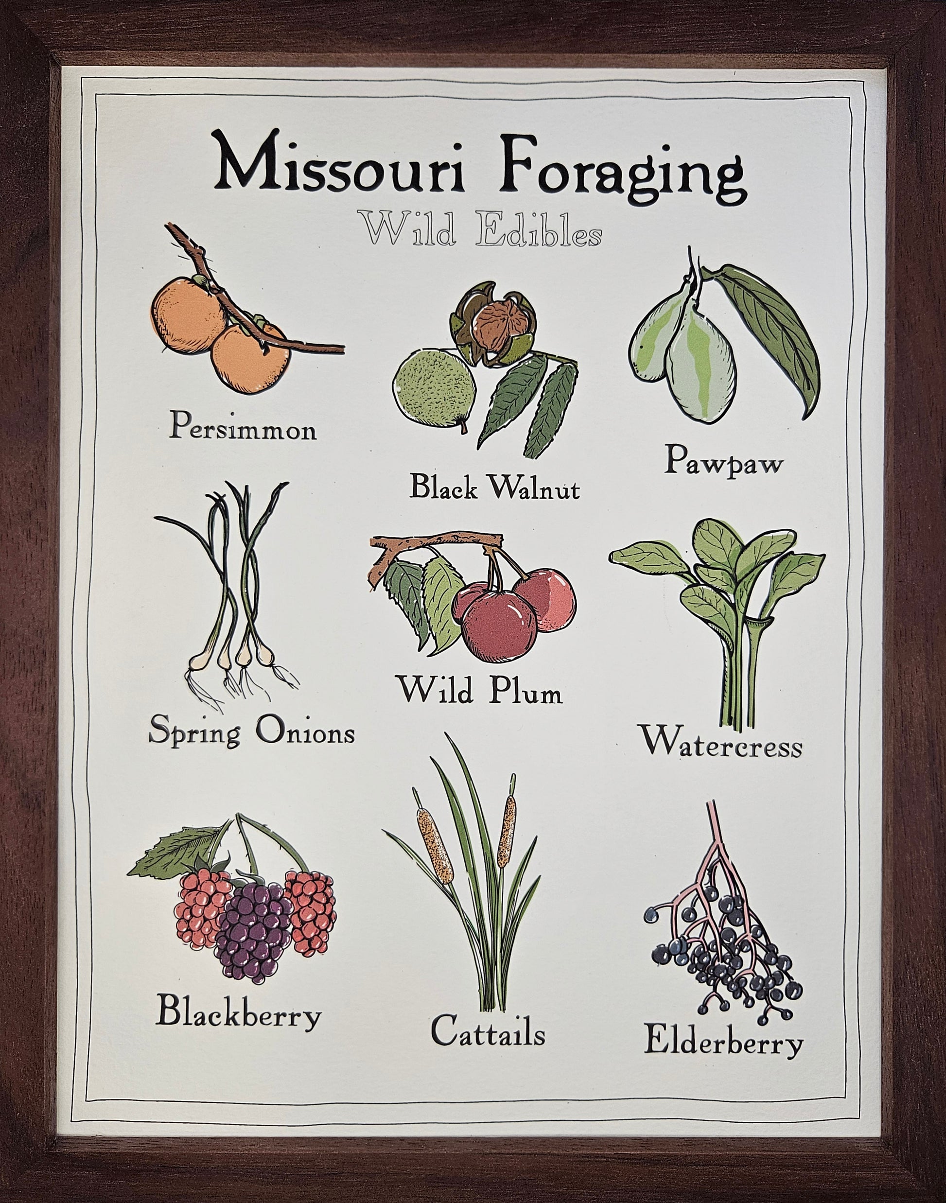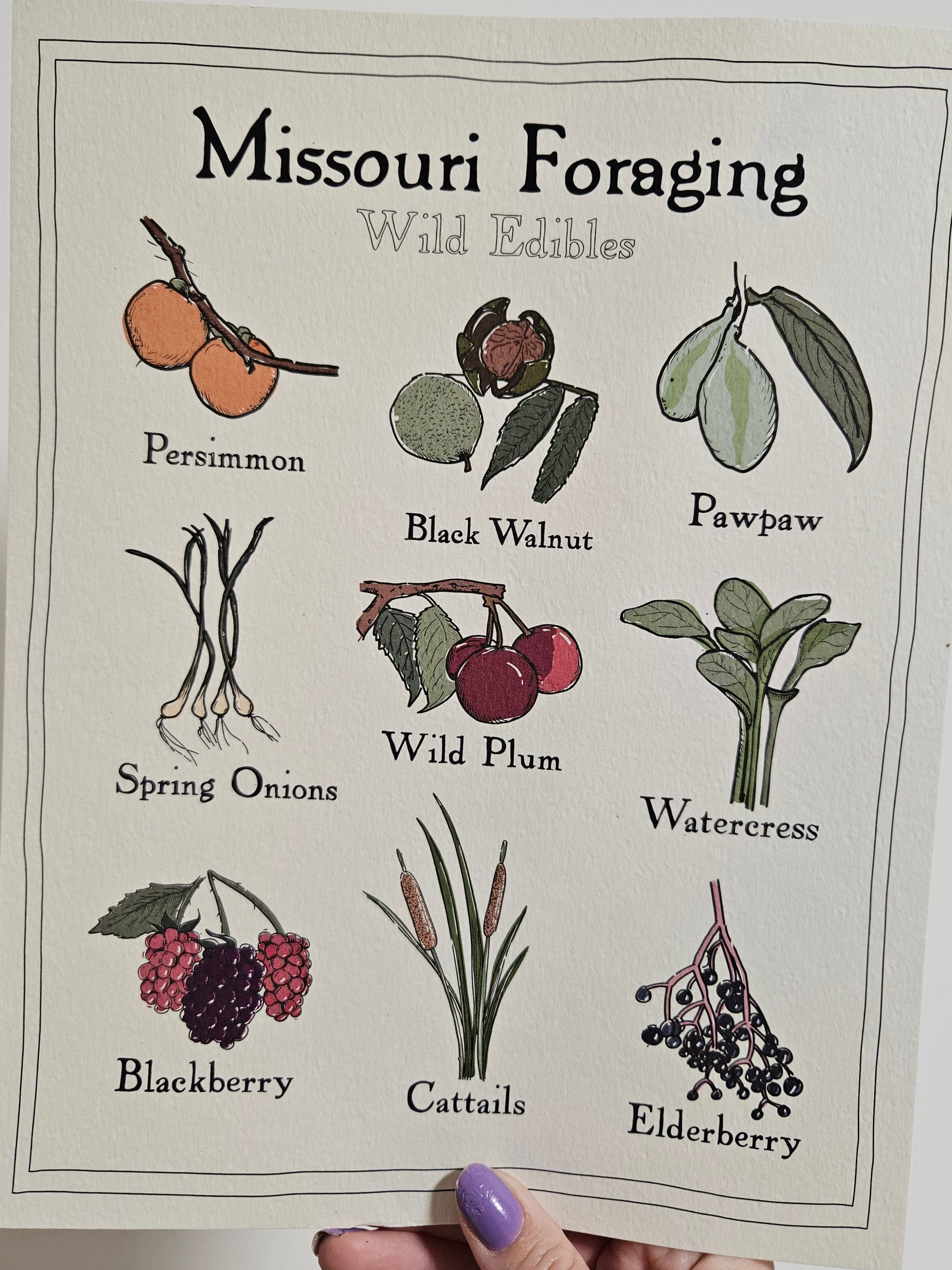 Hand-drawn illustration of some of Missouri’s edible plants.